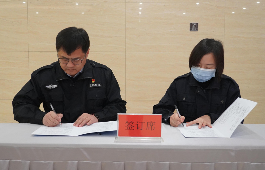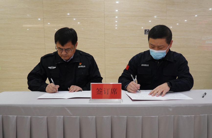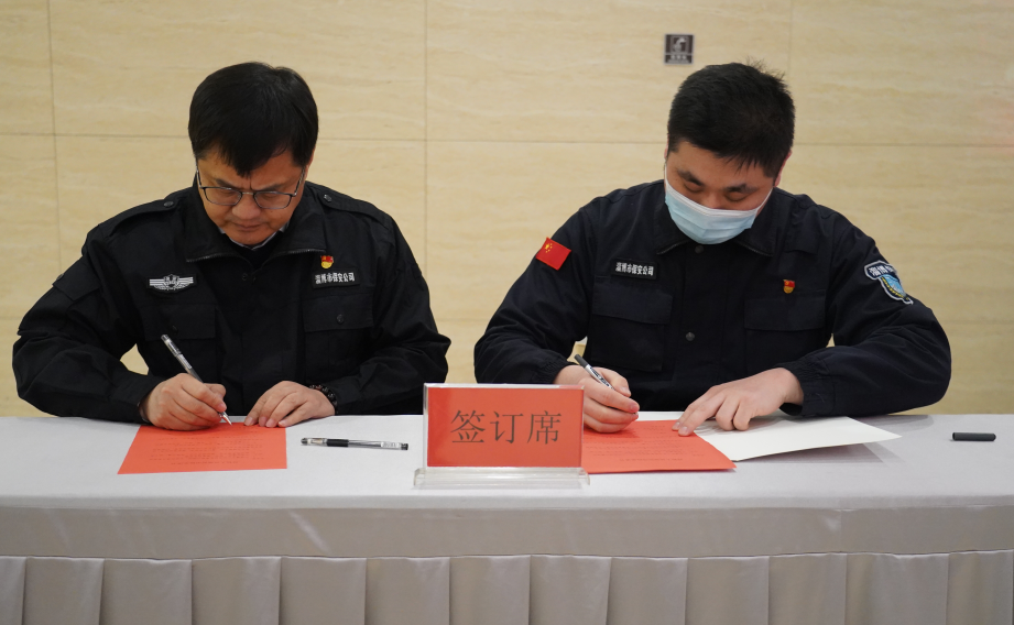 黨委書(shū)記、董事長(zhǎng)付志欣同志與中層代表簽訂2023年度黨風(fēng)廉政建設(shè)目標(biāo)責(zé)任書(shū)、2023年度安全生產(chǎn)目標(biāo)責(zé)任書(shū),與押運(yùn)隊(duì)員代表簽訂持槍人員規(guī)范用槍承諾書(shū)。